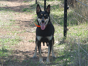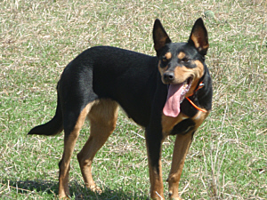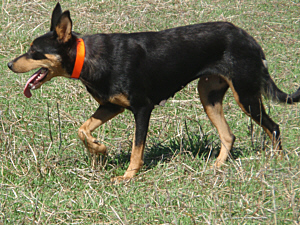 Medium sized black/tan bitch. Great